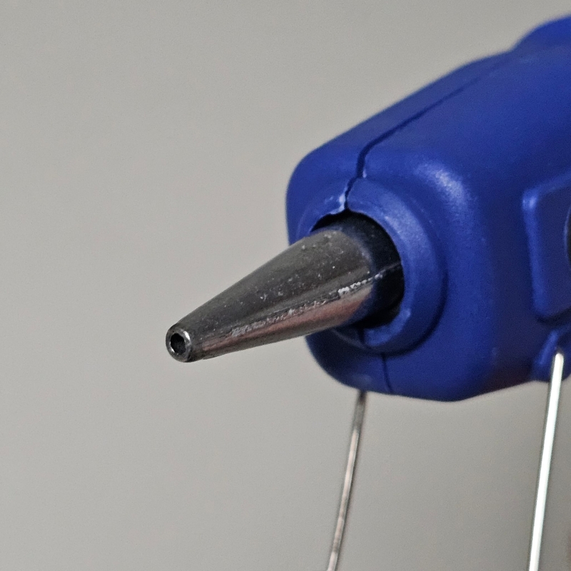 Tijdens het gebruik hou je de stekker in het stopcontact. Zorg voor een vlakke ondergrond zodat het lijmpistool niet om kan vallen.